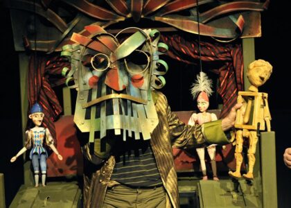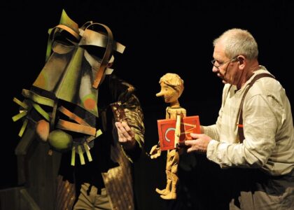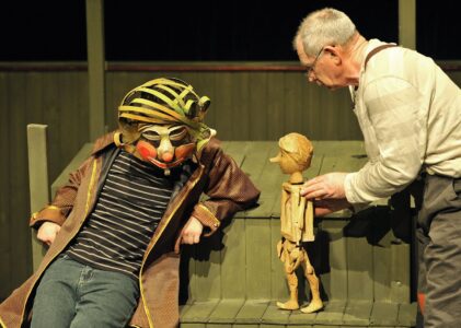 Pinocchio, az éltre kelt fabábu állandó vendége a világ bábszínpadjainak. Kalandjait, jó és rosszcselekedeteit ismerik kicsik és nagyok egyaránt. Mi kell ahhoz, hogy élővé váljon egy fából készült kisfiú? Vajon elég a szándék, vagy szükség van-e tettekre is? Sok a kérdés és sok a rossz válasz is, nehéz dolga van tehát egy kis fabábunak, aki el akar igazodni az életben. Ám a történetnek van egy másik főszereplője is, az öreg Geppetto. Ő az, aki kifaragja Pinocchio-t, alkotója, édesapja, lelkiismerete a világban bolyongó főhősnek. Olyan, mint minden édesapa, sokat aggódik fiacskájáért, és mindig megbocsát neki. Előadásunkban az ő szemén keresztül látjuk, miféle kalandokba keveredik az élni vágyó bábu, hiszen ők összetartoznak, Pinocchio és Geppetto. Nagy utat járnak be együtt, és mindketten sokat tanulnak belőle. És talán mi is…