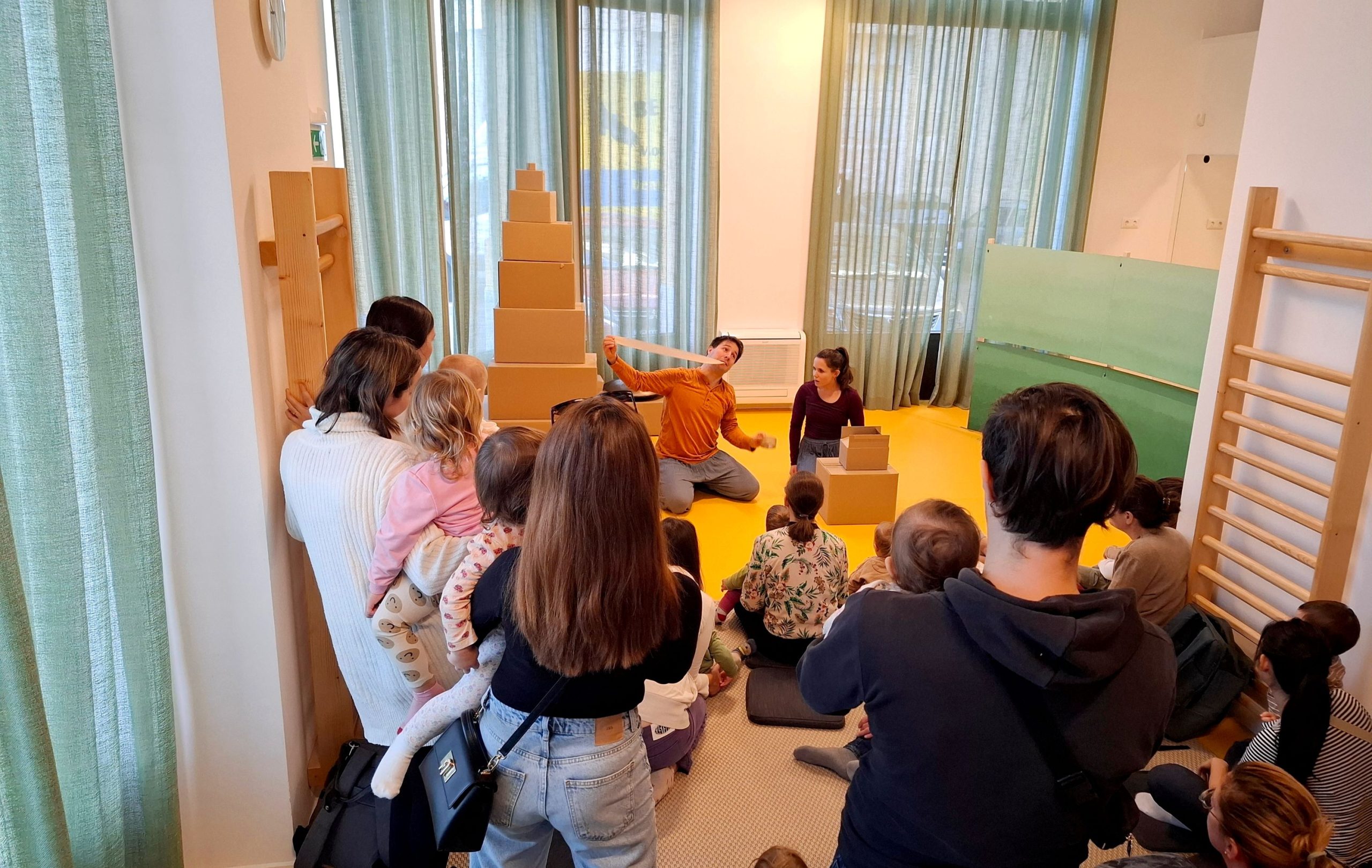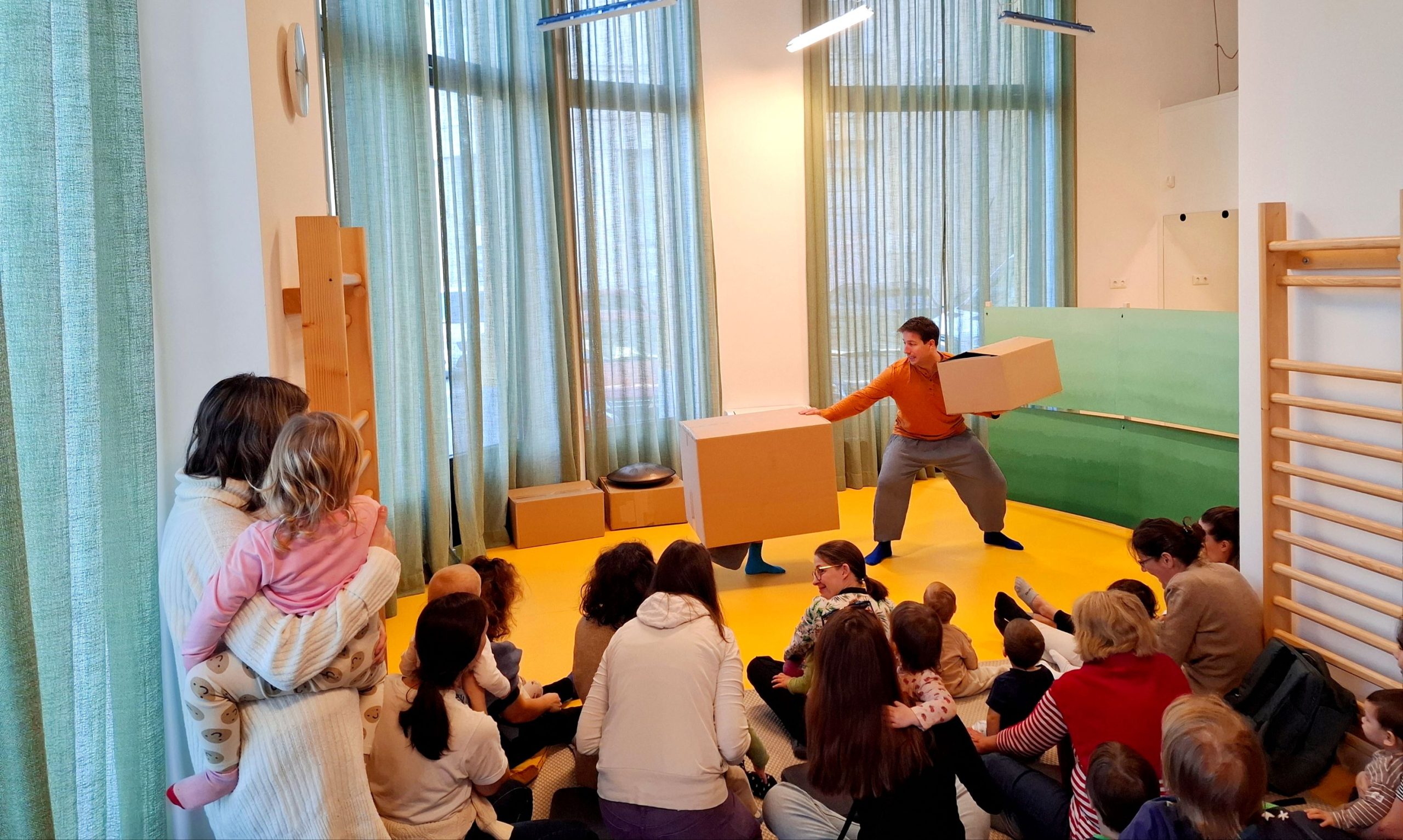 „Hűha! Egy hatalmas doboz! Arrébb tudom tolni? Mi lehet benne? Bele kellene nézni! De jó hangja van! És milyen az íze? Hol lehet kinyitni? Beleférek? Hú, ez tele van!” Mennyire izgalmas egy papírdoboz? És kettő? Vagy netán öt? És ha nincs más a játéktérben, csak dobozok? Az egyik apró és zörög, a másik színes és nehéz, a harmadik óriási és beleférünk. Játék kartondobozokkal és papírokkal. Szülőkként lehetőségünk volt megfigyelni, hogyan nyílik ki a világ gyermekeink számára. Láttuk, milyen izgatott érdeklődéssel vesznek kezükbe egy új tárgyat vagy anyagot, milyen mohó kíváncsisággal szeretnék megismerni a titkot, amely egy zárt dobozt, fiókot vagy szekrényt övez. Tapasztalatból tudjuk, hogy sokszor a leghétköznapibb tárgyakkal való találkozás a legizgalmasabb és legfejlesztőbb a gyermekek számára.