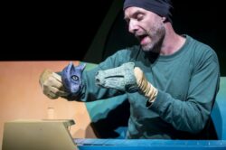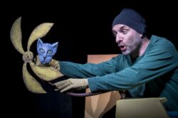 Előadásunk egy körforgás. Macskánknak nem ez az első köre, nem először akar átjutni a lakatlan szigetről a túlpartra. Ő ezeken a próbákon-meséken-helyzeteken már végig ment, többször is…