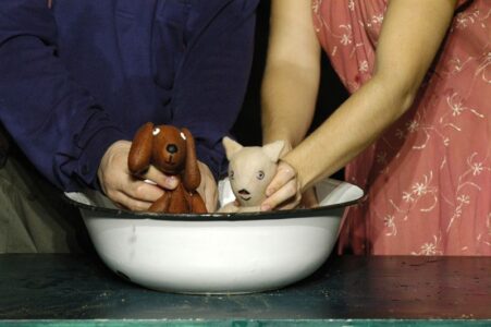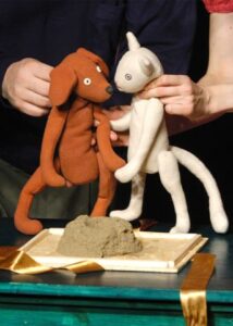 Kutyus és Cicus egy házban élnek, barátok. Számos mulatságos kaland megesett már velük, amelyek közül hármat el is mesélünk. Elsőként megtudhatjátok, hogyan sütöttek közösen egy nagy születésnapi-névnapi tortát, amibe nem csak tej, de még kolbász is került. (juj!) Utána végignézhetitek, hogyan takarítják fel a nagy sütés-főzés után a konyhát azzal a szappannal, amit Kutyus tévedésből lenyelt! (jaj!) Végül pedig színházat fognak játszani, ahol ők maguk lesznek az előadás szereplői. (hűha!) Jó szórakozást!